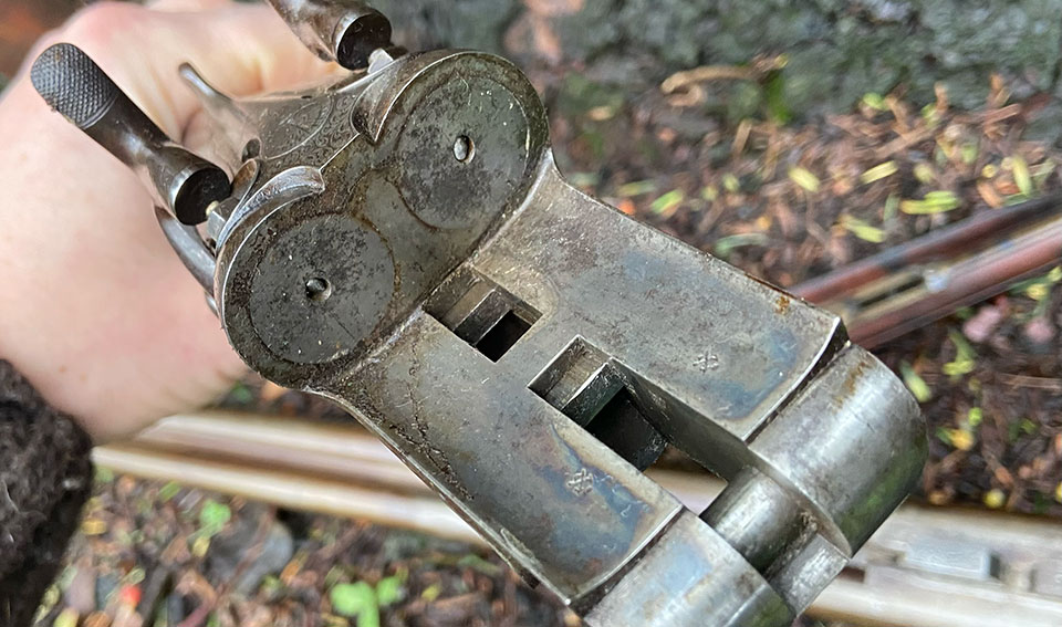 Despite the dirt and grime, and a little frosting on the face, around the striker holes, the original colours are visible on the beautifully concave bar, which is a marvel of action-filing. The Purdey double-under bolt slots into its bites firmly and fits snugly.